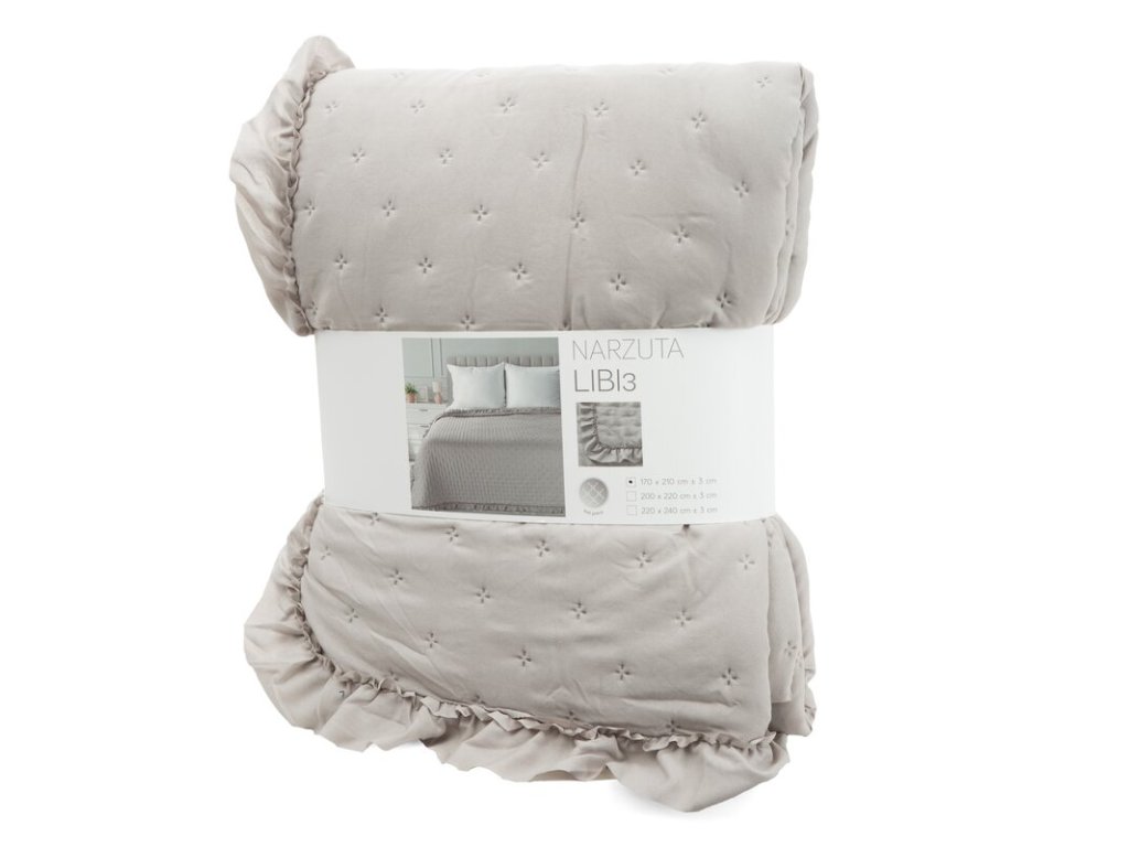 Elegantný prehoz na posteľ Libi v romantickom štýle. Po obvode je zdobený jemnými volánikmi, ktoré dodajú spálni útulný a dekoratívny vzhľad. Povrch je doplnený o vtláčaný drobný vzor, ktorý pôsobí decentne a nadčasovo. Béžová farba ľahko zapadne do rôznych interiérov a prinesie do spálne nádych elegancie.