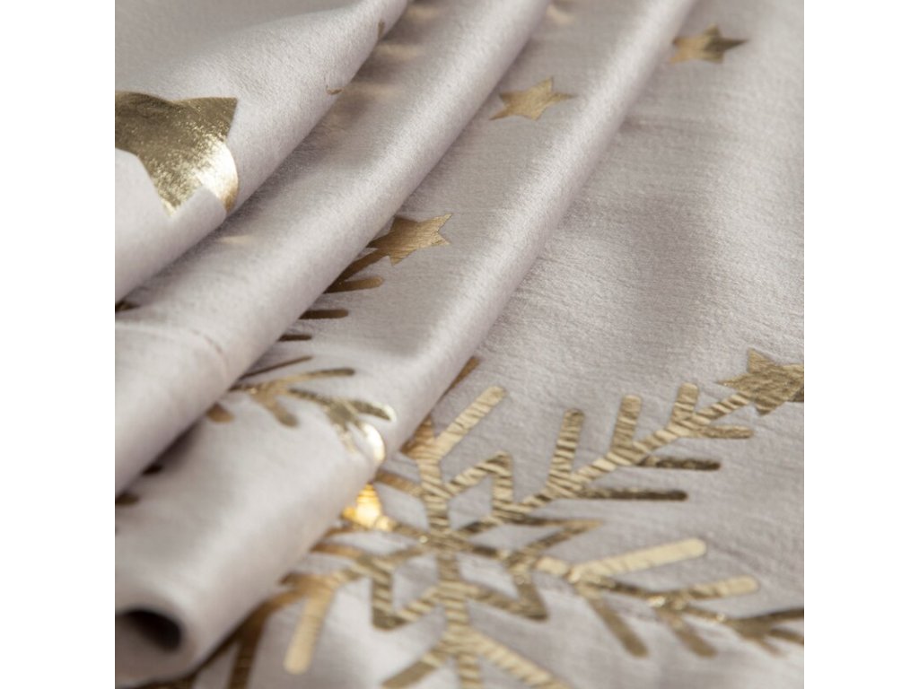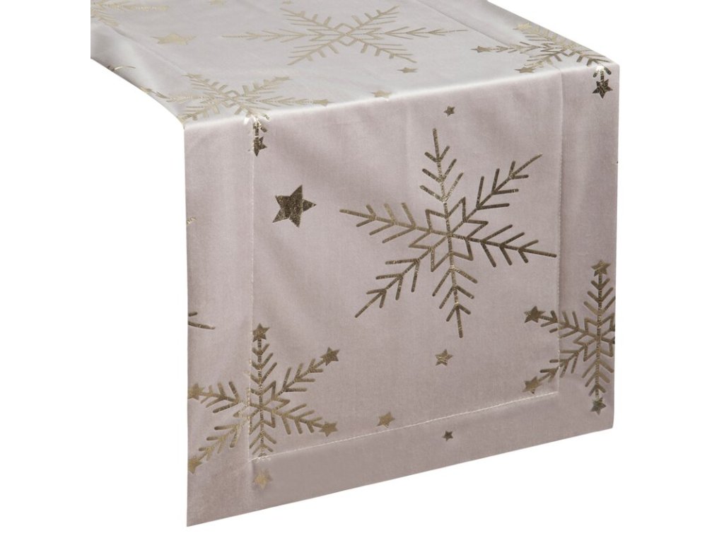 Elegantný zamatový behúň so sviatočným motívom hviezdičiek je krásnym doplnkom vianočne prestretého stola. Vďaka rozmeru 40×140 cm sa hodí na jedálenský stôl, komodu alebo konferenčný stolík. Jemný lesk zamatu a dekoratívny vzor dodajú interiéru luxusný a útulný vzhľad.